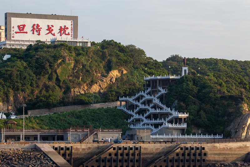 矗立於山頭、氣勢雄偉的紅底白字巨型照壁,是馬祖最重要的戰地精神地標,也是進入福澳港時最鮮明的視覺印象。