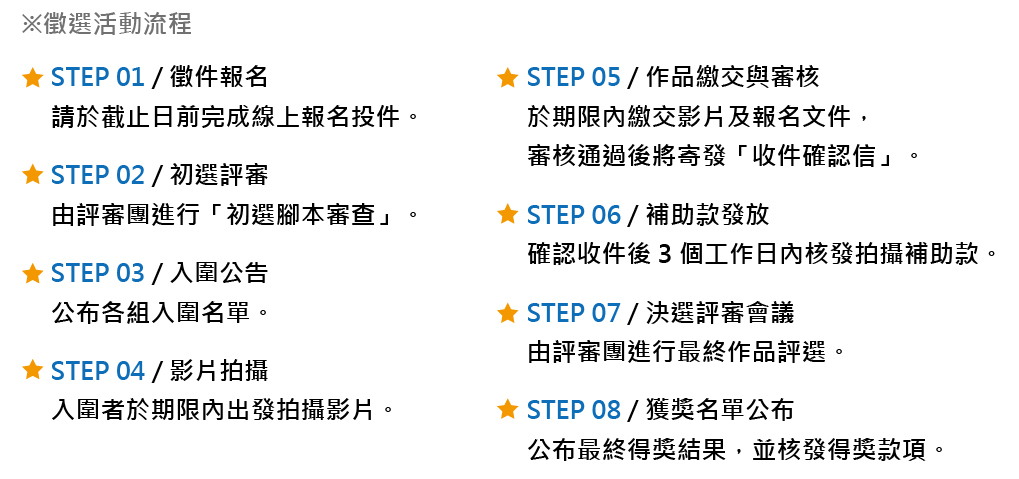 ※ 報名方法:請填寫參賽表單並在隨表單附件上傳腳本