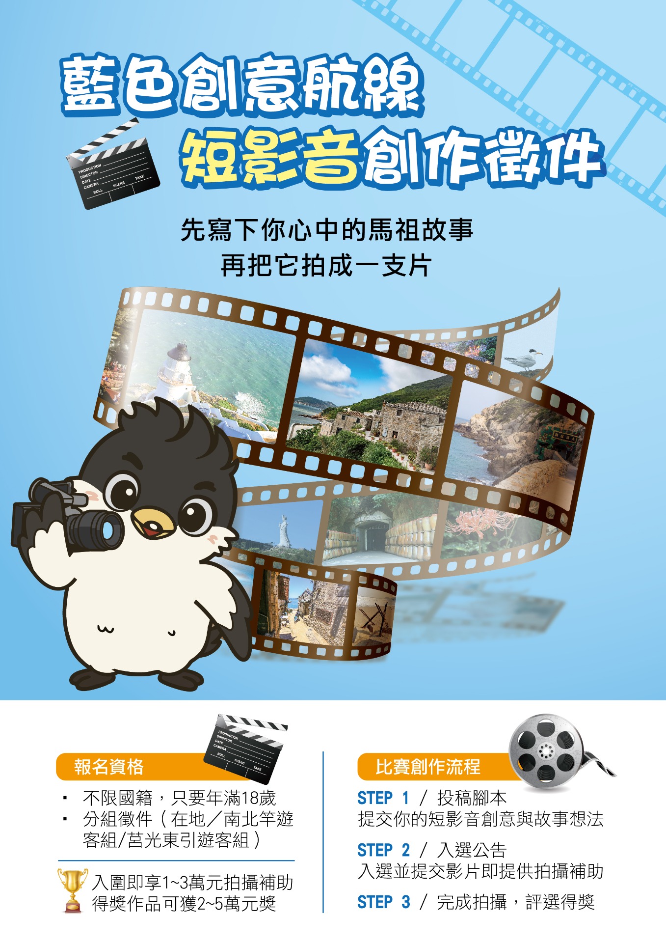 紀錄下專屬你的馬祖故事。🎬 總獎金 30 萬元 💰+最高 3 萬元拍攝補助,